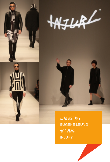 EUGENE LEUNG,澳藉華裔設計師,畢業于新南威爾士大學建筑系,其后一直醉心悉尼街頭藝術。他于2005年在澳洲悉尼創立個人時裝品牌INJURY,并在澳洲墨爾本時裝展中(Melbourne Fashion Week 2005) 首度展出INJURY男裝系列。自此他的作品廣受澳洲、新西蘭、日本時裝買手及傳媒關注,并于 Rosemount Fashion Week Sydney 定期展出。