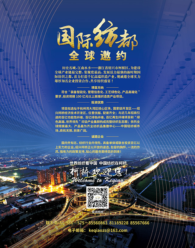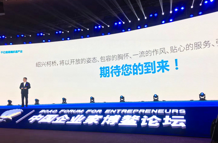 “世界紡織看中國,中國紡織在柯橋。紹興市柯橋區前身是中國十大財神縣-紹興縣。紡織是柯橋的傳統產業、支柱產業、時尚產業、綠色產業。今天,我們帶著打造新時期國際紡織之都的夢想,來到博鰲,期待以紡織為媒,以論壇為機,廣泛結緣,謀求合作、共贏未來!痹12月1日舉行的2019中國企業家博鰲論壇“民族品牌”之夜上,紹興市柯橋區區委書記沈志江在會上廣發英雄帖,誠邀國內外紡織領軍企業來柯橋投資發展,引進建設百億高端制造項目,攜手構建產業鏈最全、集聚度最高、競爭力最強的現代紡織生態,共謀創新與高質量發展,助力品牌強國建設。