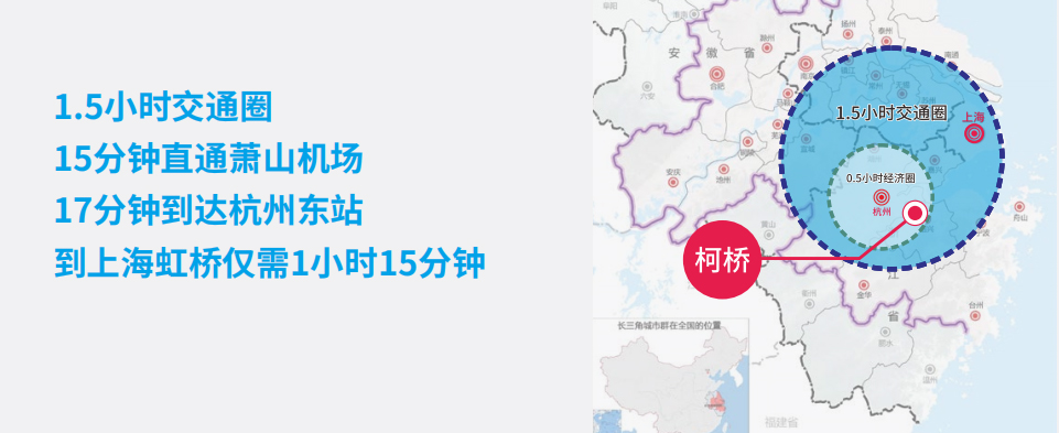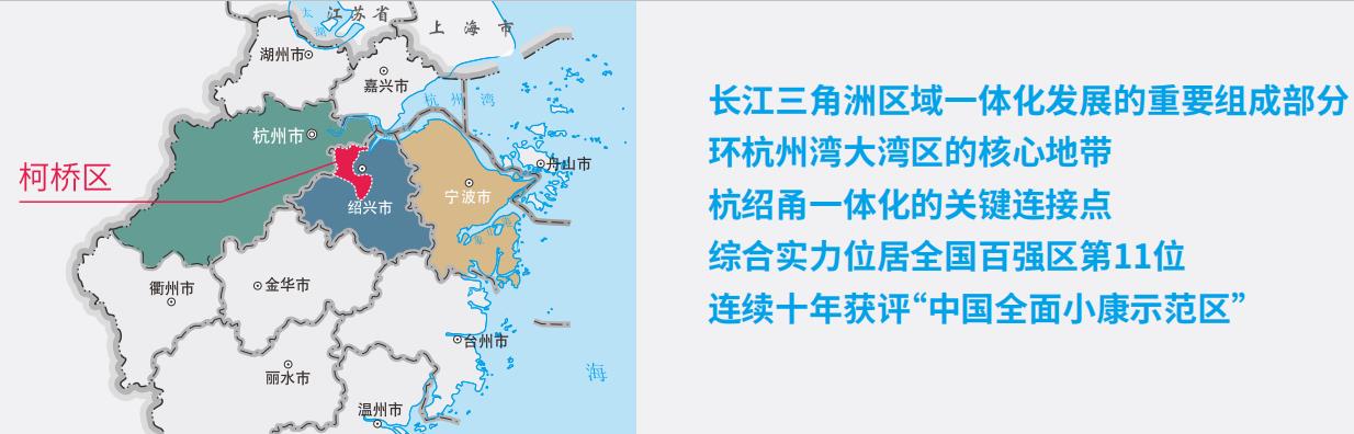 據介紹,柯橋毗鄰杭州市蕭山區,位于環杭州灣大灣區的核心地帶,是長三角一體化發展的重要節點。自柯橋出發,15分鐘高速即達杭州機場,17分鐘高鐵到達杭州東站、75分鐘到達上海虹橋站,90分鐘車程到寧波-舟山港。