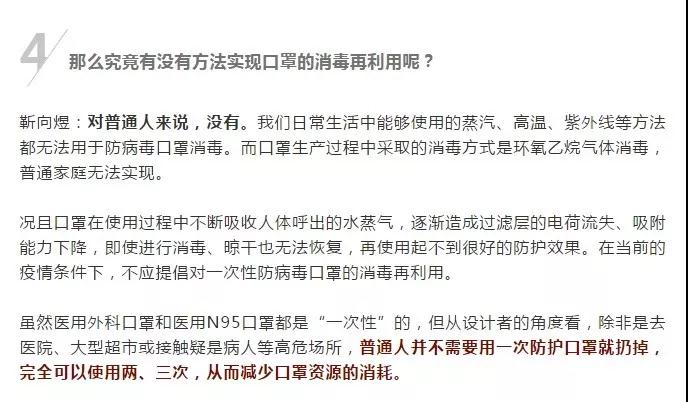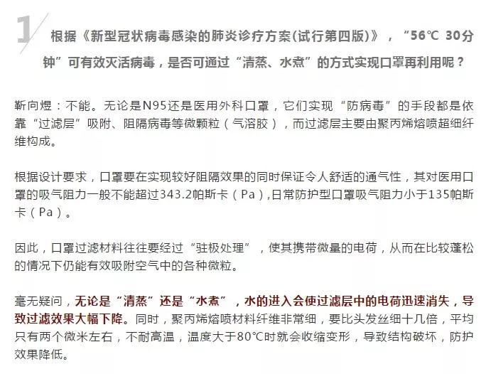 “出門買口罩,口罩沒買到,浪費一口罩”,今天你買到口罩了嗎?由于醫用及防護物資應暫時處于短缺狀態,很多地方仍然很難買到口罩。網絡上開始流傳將使用過的口罩放鍋里蒸,放水里煮,紫外燈下烤,噴酒精灑消毒液晾干等重復利用方式。表面上看,這些方法與新冠病毒怕高溫、怕酒精、怕紫外的弱點相符,但是口罩真的能實現使用、消毒、再利用的“無限續杯”嗎?