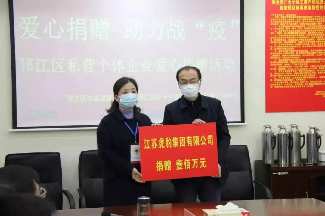 同風雨,共抗疫?箵粢咔椋⒈嗽谛袆!針對目前醫療物資緊缺、醫護人員超負荷工作等嚴峻問題,2月4日下午3時,虎豹集團向揚州市邗江紅十字會捐贈人民幣100萬元。