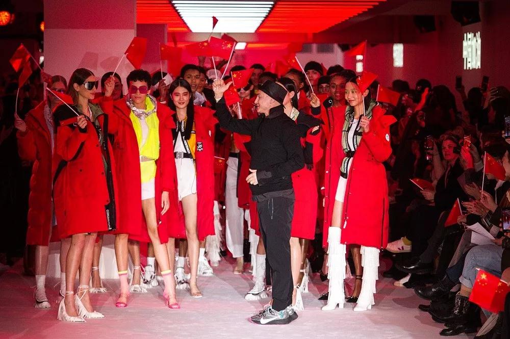 在波司登本次時裝秀現場,到處可以看到中國紅的元素。走秀的中外模特臉上貼著中國國旗,在秀臺上展示出身上的極具設計感的羽絨服。據悉,秀場單品大膽運用新果綠、核能黃、梵高藍等高飽和度的色彩,綴以反光數碼迷彩和炫彩等流行元素,將時尚的突破和專業的羽絨服工藝進行了完美的融合。 閉幕秀的時候,54位模特身穿紅色羽絨服與設計師一同出場謝幕時,現場氣氛達到高潮,全場響起了中國加油的歡呼。來自各國嘉賓都用中文高呼“中國加油”,為中國和中國品牌送出祝福。 大秀結束后,現場的中外嘉賓都表達了看完秀后的激動心情,和對中國的美好祝福。有位來自英國的觀眾感嘆:“這是我參加過最特別的時裝周,中國加油!”。另一位到場的華僑則更為激動,他感嘆:“在時裝周看到國旗好自豪,中國加油!”。
