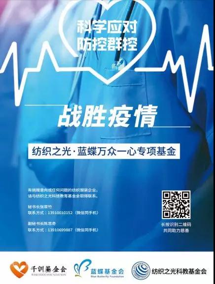 武漢疫情爆發以來,全國各地、各行業積極投身抗疫行動中。一方有難,八方支援,紡織行業在行動。面對防疫形勢和物資保障需求,紡織之光科技教育基金會也迅速反應,為打贏這場戰役而全力以赴。紡織之光科技教育基金會按照規范進行操作,通過協調物資、落實執行、加強宣傳等方式合規有序地開展工作,聯合公募基金會募集疫情防控物資及善款捐助。紡織之光基金會的號召得到了來自各理事單位、專項基金發起人和行業企業的積極響應,各方通過定向捐贈和專項基金的形式表達了馳援一線的決心并踴躍捐贈,為這場必須打贏的疫情防控狙擊戰盡一份綿薄之力。籌款51萬元采購物資為一線醫護人員提供保護1月27日,紡織之光科技教育基金會及時向行業內發送了《關于參與疫情防控阻擊戰的募捐倡議書》,號召行業捐款捐物。2月3日,紡織之光科技教育基金會率先捐贈5萬元,與北京藍蝶基金會聯合發起,在浙江千訓基金會(5A,公募基金會)正式設立“紡織之光•藍蝶萬眾一心專項基金”(公開募捐編號:53330000A93376148LA20002),專項基金所籌款項用于為湖北黃岡、孝感、荊州,浙江等一線醫院提供醫療物資、物資運輸保障、公共衛生防疫事業建設。公募籌款信息發布上線發布后不久,得到全國紡織行業、中紡聯員工和行業愛心人士的積極響應,共同為沖鋒一線的醫護人員提供防護保障和溫暖關懷,讓最美逆行者身心無憂。截止到2月21日,“紡織之光•藍蝶萬眾一心專項基金”籌款總金額為416621.9元,其中收到中國紡織信息中心捐贈100000元;山東魏橋創業集團有限公司黨委書記、總經理張紅霞通女士個人捐贈50000元;常熟市翔鷹特纖有限公司總經理陶文祥先生捐贈人民幣5000元。中國服裝協會為支持抗擊疫情也向紡織之光科技教育基金會捐贈100000元。所籌款項已經為湖北省蘄春縣第二人民醫院、中國人民解放軍杭州903醫院、湖北孝感中心醫院、湖北航天醫院、荊州市監利縣中醫院、監利縣婦幼保健院、監利縣第二人民醫院、監利縣第五人民醫院、監利縣容城鎮衛生院、監利縣第三人民醫院、監利縣人民醫院、竹山縣人民醫院等醫療機構采購防護服、護目鏡、手套、面罩等醫用物資。 定向捐贈結合專項基金多方募集馳援一線“紡織之光紡織服裝流通專項基金”的發起單位,通過定向捐贈專項基金的形式表達了馳援一線的決心。2月13日下午,“紡織之光紡織服裝流通專項基金”發起單位,中紡聯流通分會秘書處得到漢正街市場管委會求助信息:漢正街市場管委會與街道辦事處目前的防疫工作任務十分艱巨,防疫物資尤其是一次性防護服、隔離服和護目鏡等出現緊缺。在紡織之光基金會秘書處、流通分會秘書處的共同努力和中紡商聯(北京)投資管理有限公司、東莞市虎門電子商務協會、疊石橋市場管委會、廣州白馬服裝商會等單位的支持下,募款21萬余元,在最短時間內盡全力幫助漢正街度過了防疫所需物資緊缺的難關。2月14日,受強冷空氣南下影響,湖北省自北向南、自西向東出現寒潮和中到大雪天氣,強冷空氣帶來強降溫及明顯大風,武漢市氣溫降幅達10到12℃,陣風達7到9級,最低氣溫為零下3℃。全國各地和湖北省的醫務人員在不同的隔離區晝夜奮戰缺乏必要的御寒衣物。波司登公益基金會在中國服裝協會的協助下,緊急向紡織之光科技教育基金會捐贈了2975件羽絨服。在寒潮到來前,波司登羽絨服及時送達湖北航天醫院、湖北省漢川市人民醫院、解放軍杭州903醫院、湖北省荊州市監利縣中醫院、湖北省荊州市監利縣第五人民醫院等9家醫院并全部及時發放。同時,紡織之光科技教育基金會正在陸續接收依文集團、安莉芳(上海)有限公司、艾萊依集團有限公司、江蘇愛倫家紡有限公司、廣東動態集團捐贈的羽絨服、棉衣、保暖內衣及床上用品等物資,近日將發往湖北武漢、孝感、荊州等地定點醫院。