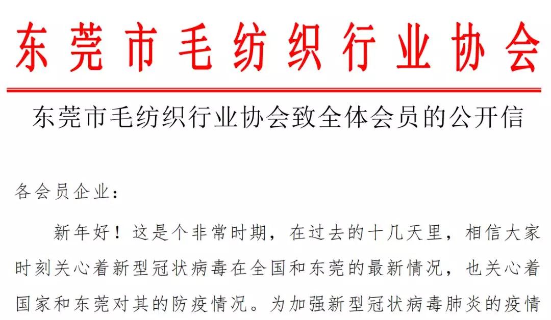 二是強化宣傳引導,營造防控氛圍。通過行業協會、大朗毛織公眾號等平臺發布了“行業協會防控疫情的倡議書”、《廣東省人民政府關于企業復工和學校開學的時間通知》、“毛織企業復工注意事項”等信息,協助廣大毛織做好疫情防控工作以及復工前后的準備工作,營造群防群控、安全有序復工的良好氛圍。 三是積極推動毛織企業愛心捐贈,為抗擊疫情貢獻毛織力量。先后組織大朗慈善會、東莞市毛紡織行業協會、東莞市紡織紗線行業協會舉辦兩場抗擊疫情愛心捐贈活動,定向對公安、交警、醫院、社區等一線單位進行點對點愛心捐贈。推動明德實業、貴德實業、杰發紗線、杰盛紗線、裕和等一批熱心毛織企業捐資損物,為抗擊疫情貢獻毛織行業的力量。 四是深入調研督導,掌握行業情況,分別就疫情影響和開工情況,對140家規上毛織企業和四大行業協會員進行調研。每天跟蹤和更新毛織規上企業復工情況,形成日報機制。截至2月26日,大朗規上規上毛織企業復工率為40%。