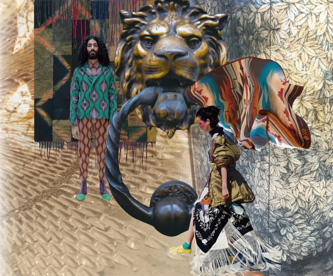 面料 織錦、苗繡、壁毯元素和提花細節,通過極具戲劇性的新型復古廓形,表現出科技風格的時代特征;拼接圖案帶來環保時尚新視角,通過鮮明的運動細節和明艷的色彩搭配,打造輕奢張揚的街頭氣質;廢棄紗線回用、天然染料染色等呼應可持續設計理念;緙絲、挑花、抽絲繡、扎染、蠟染等精湛的紡染織繡工藝,結合新式的現代審美,帶來生態藝術、文化承載與實用主義交融的新觀念。