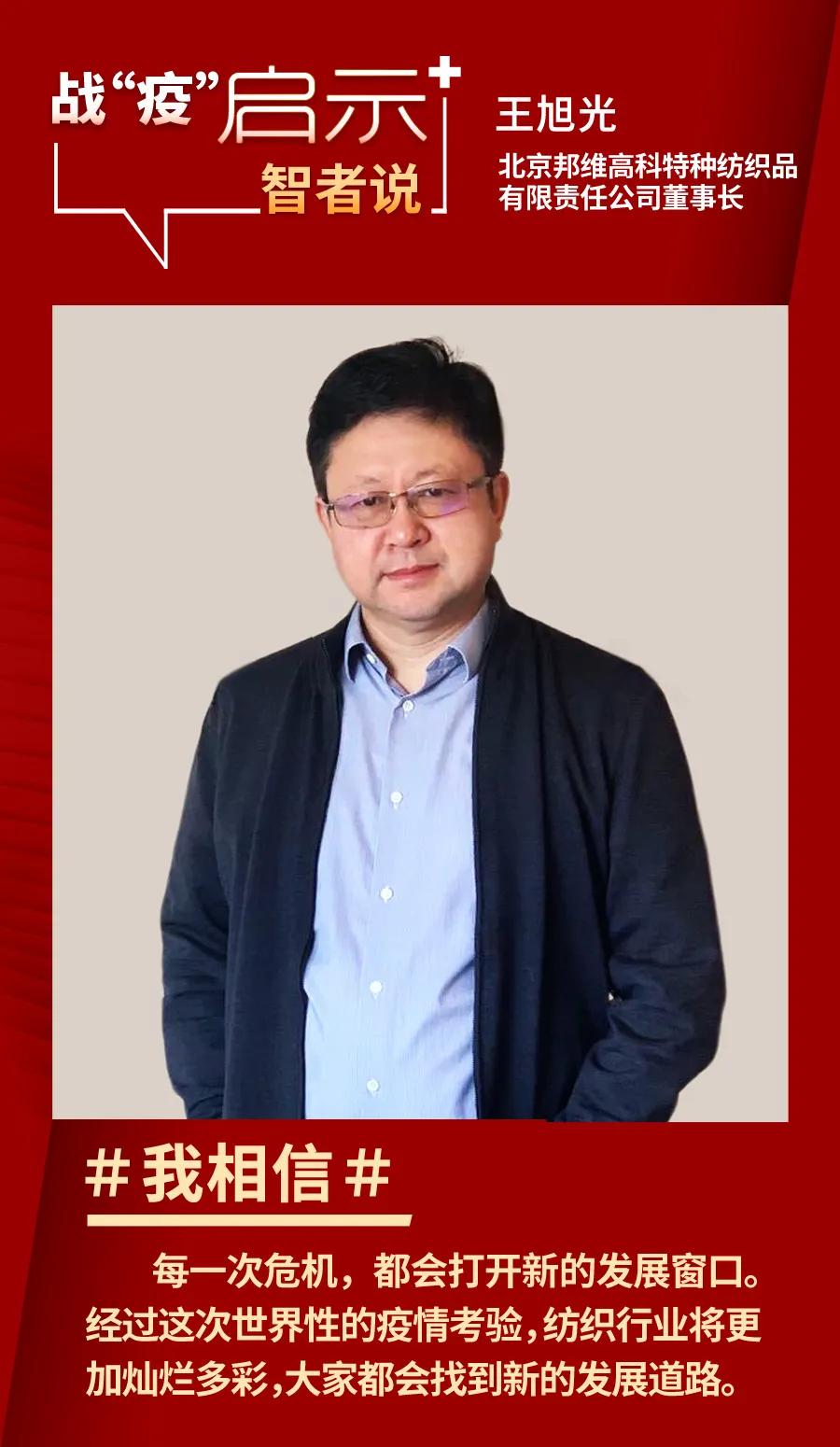 敢于擔當 點燃國人愛國熱情 舍我其誰 激勵大家完成“壯舉” 《中國紡織》:這場大考,給您留下的最深感受是什么?您對公司未來定位、戰略等方面有哪些新的思考? 王旭光:這次我有一個很大感受就是:當國家遇到困難的時候,民間爆發出的一種力量,一種“敢于擔當舍我其誰”的愛國主義精神,在激勵、助推全國人民眾志成城,完成壯舉。如果沒有這種力量,邦維也不可能完成如此艱巨的任務。在生產過程中,為了弘揚這種精神,邦維通過發放慰問品以及各種形式感謝和鼓勵全體生產一線的員工。 在業務發展方面,我感到邦維又迎來了一個新的發展機遇。我們目前有七大業務板塊:軍工配套紡織品、核生化(NBC)防護、特種行業防護、消防特警及工業安全、衛生應急防護、柔性復合材料及制品、單兵防護材料及裝備。衛生應急防護是邦維公司七大業務板塊之一,經過多年辛勤耕耘,公司實現了從單品供應到一站式供應,再到工程集成的飛躍。近幾年隨著企業規模的迅速發展,北京邦維的知名度也在不斷提高。 邦維的防護產品,起步于軍隊的核生化防護(CBRNe),應急防護是公司最重要市場定位,過去的25年里,公司經歷過很多公共衛生、自然災害、社會安全等重大事件,如:非典(SARS)、埃博拉、“08年汶川地震”、“8.12天津爆炸”“321響水爆炸”等,每次公司都能夠應急響應作出貢獻,為此公司也得到了一步步的發展。隨著國家經濟的發展、社會的進步,應急防護行業一定會迎來一個大的發展期。過去邦維的衛生應急防護板塊在公司所占的比重很小,這次新冠疫情會讓這個板塊迅速成長。為此我們正在全面規劃公司“應急防護”未來的發展戰略,特別是衛生應急要加大投入,成體系的發展,成為公司的一個新的增長極。 我認為通過“新冠肺炎疫情”這個事件,國家各地政府一定會重視應急防護的體系建設,以及制定相應的支持政策,否則應急行業的企業難以生存。2月14日習主席發表重要講話,指出“要把生物安全納入國家安全體系”。這是一個重大的政策信號,邦維一定要抓住機遇。