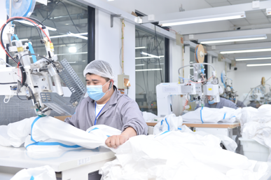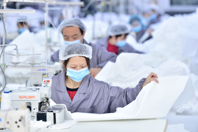 《中國紡織》:今年第一季度企業生產情況如何? 王旭光:作為防護服生產,我們已經把產能降下來了,現處于收尾階段。目前我們的庫存還有約18萬件,但國外的需求信息是巨大的,不過由于CE認證、FDA認證無法短時間取得,只有小批量的零星出口,這是非常遺憾的。我們很多的合作企業告訴我們,他們的外貿單都取消了,他們這個時候應該生產防護用品,同樣的原因,他們接不到訂單。 《中國紡織》:國家及各地政府推出眾多“政策紅利”促經濟復蘇,本企業受益最大的是什么?您認為企業還需要哪些政策扶持? 王旭光:應該說國家的相關政策響應很快。比較突出的是,獲得低息貸款,效率非常高,很好的舒緩了資金緊張情況。在得知公司抗疫防護產品生產擴能產生資金需求時,邦維長期合作的工商銀行王府井支行與中國銀行海淀支行快速響應,立即組織相關人員與公司對接,根據實際情況制定服務方案,開通綠色通道快速審批,在各環節提高效率,順利完成了3000萬低息貸款審批,同時降低存量融資利率,大力支持了公司的防護物資生產工作。還有就是針對防護用品的擴產技術改造,工信部和北京市都發布了相關的支持政策。公司這次投入很大,很多設備面臨著疫情過后大量閑置的問題。為了下一步的發展,公司也需要進一步的改進廠房環境,希望國家的政策能夠早日下達、實施,并能夠針對未來的應急防護技術改造給予支持。
