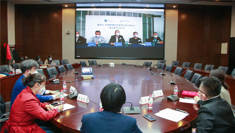 4月2日,北京服裝學院和廣州藍科士生物科技有限公司舉行“云簽約”“云揭牌”儀式,共同成立國內第一家健康防護柔性科技工程中心。北京服裝學院副校長廖青;廣州藍科士生物科技有限公司董事長張海濤;藍科士-北服健康防護柔性科技工程中心主任胡軍巖副主任張建忠、王琪、郭靜等有關領導和嘉賓、相關代表等出席了本次活動。