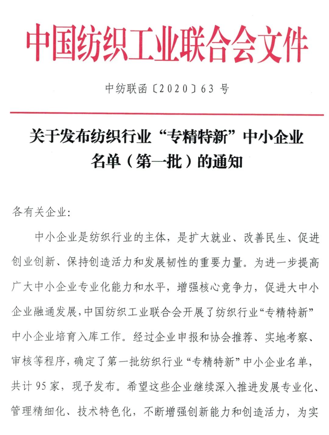 中國紡織工業聯合會行業發展部相關負責人表示:根據中共中央辦公廳、國務院辦公廳《關于促進中小企業健康發展的指導意見》、工業和信息化部《關于促進中小企業“專精特新”發展的指導意見》等精神,中國紡織工業聯合會結合行業發展實際,為落實中國紡織工業聯合會領導關于在行業內開展“專精特新”中小企業培育入庫工作的要求和部署,協調組織各專業協會和有關單位開展了這項工作。