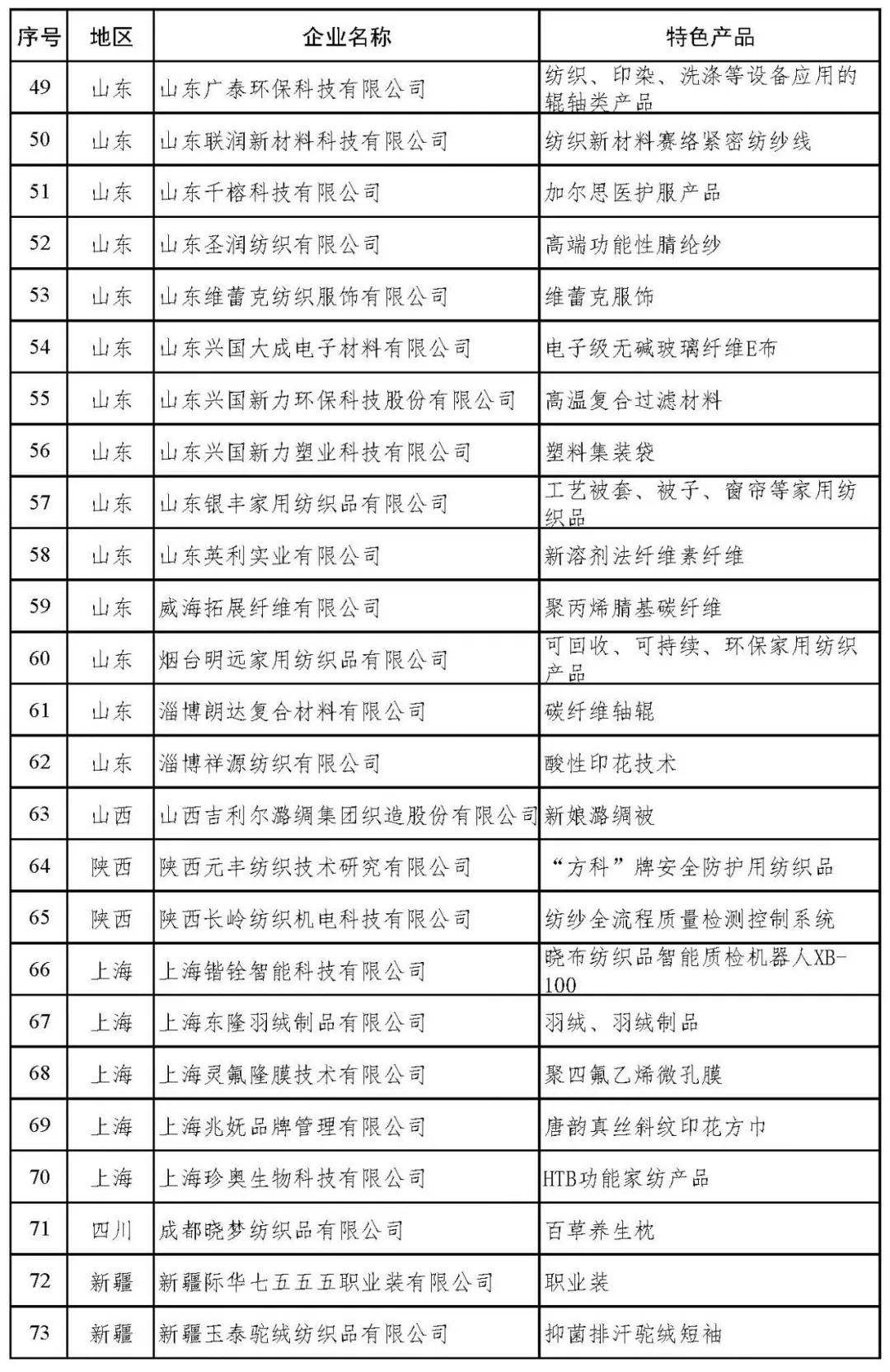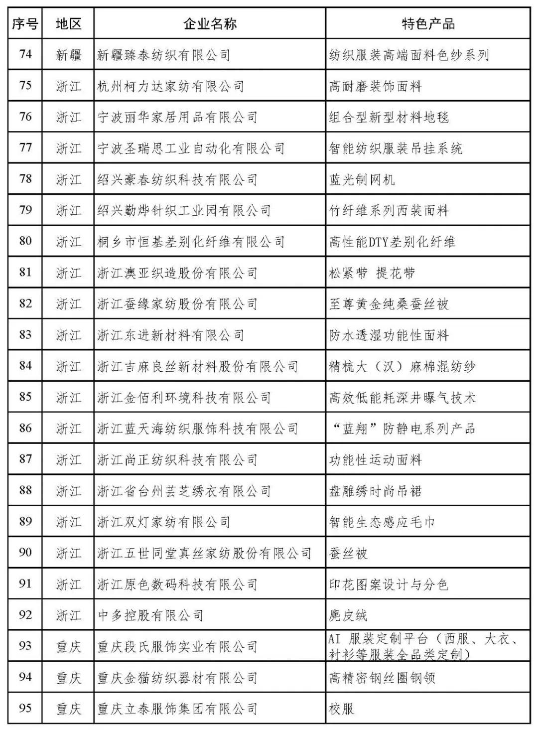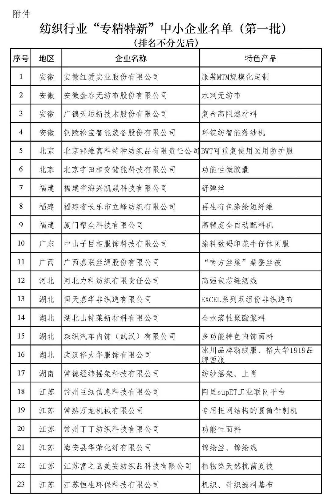 | 中小企業是國民經濟和社會發展的生力軍,紡織行業中小企業的數量在行業中更是具有絕對的主體地位,是擴大就業、改善民生、促進創業創新、保持創造活力和發展韌性的重要力量。后疫情時代,紡織行業的發展亟需“專精特新”中小企業作為“穩定器”實現“六穩六!。與此同時,紡織行業的高質量發展也離不開廣大“專精特新”的中小企業做支撐。 6月15日,中國紡織工業聯合會行業發展部對外發布了“紡織行業‘專精特新’中小企業名單”,全國19各省市共計95家紡織服裝企業上榜,涵蓋了產業用紡織品、紡機、家紡等11個紡織產業鏈各環節以及行業數字化服務等領域。據悉,這是第一批名單,后續中國紡織工業聯合會行業發展部還將根據企業上報、審核等工作的進展進行第二批的名單發布。