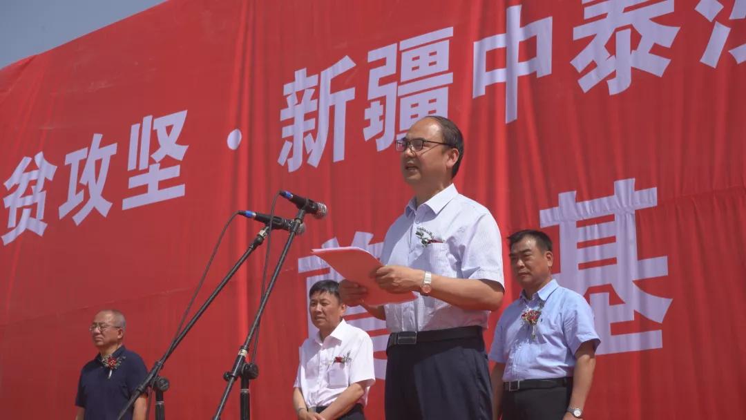 | 【助力脫貧攻堅】新疆中泰莎車縣紡織服裝產業園項目在莎車縣奠基 | | 作者:中國紡織 時間:2020-06-22 評論(0) | | 6月20日,為全面貫徹落實新時代黨的治疆方略,推進自治區發展紡織服裝產業促進百萬人就業工程,助力打贏脫貧攻堅戰,新疆中泰莎車縣紡織服裝產業園項目在莎車縣奠基。 自治區人民政府黨組成員黃三平,自治區國資委黨委副書記、主任張紅彥,自治區發改委黨組成員、副主任毛輝,自治區工信廳一級巡視員彭季,自治區自然資源廳黨組成員、副廳長艾爾肯·吾守爾,喀什地委委員、行署副專員馮建偉,喀什地委委員、莎車縣委書記范寶軍,中泰集團黨委書記、董事長王洪欣,中泰集團黨委委員、副總經理梁斌參加奠基儀式。