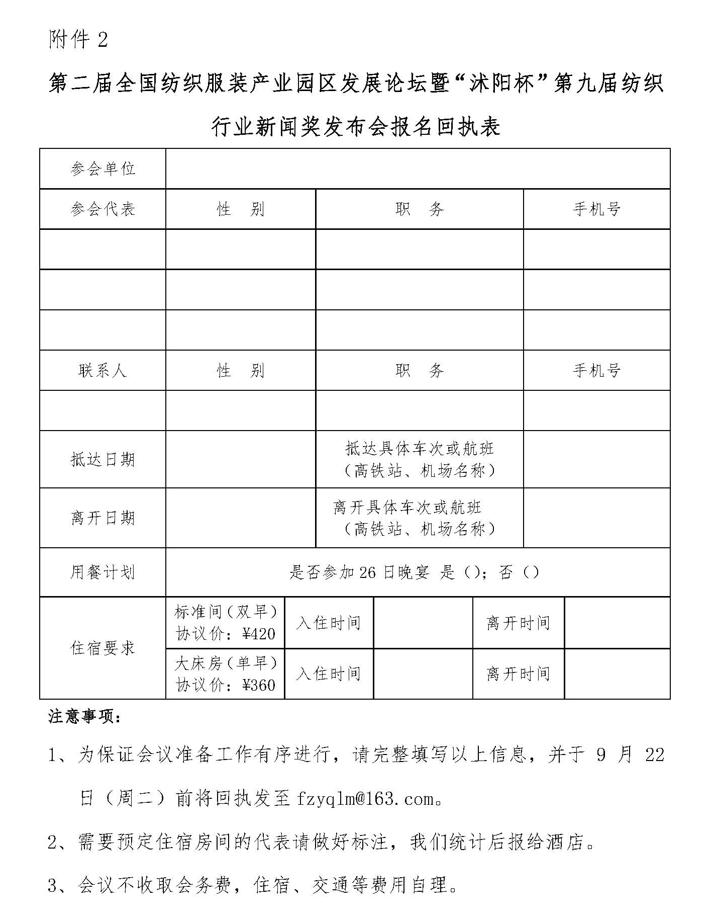 請點擊下面鏈接下載(報名回執表)第二屆全國紡織服裝產業園區發展論壇暨“沭陽杯”第九屆紡織行業新聞獎發布會.zip