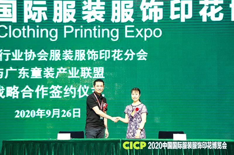 作為本次活動的一大亮點,為了更好地發揮各自專業優勢,更好地體現服裝印花在童裝品牌中的獨立價值,中國印染行業協會副秘書長、服裝服飾印花分會副會長董淑秀與廣東童裝產業聯盟執行會長高志彥分別代表中國印染行業協會服裝服飾印花分會與廣東童裝產業聯盟簽訂戰略合作協議。今后,雙方將通過展示服務、會議對接、走訪交流、培訓研討等多種形式,加強服裝印花加工企業與童裝品牌企業的交流與合作,共同推動中國服裝行業的高質量發展