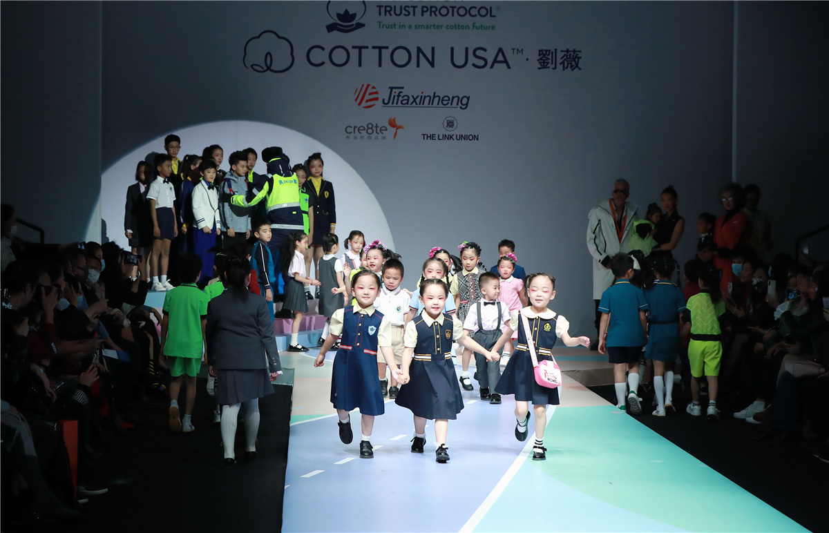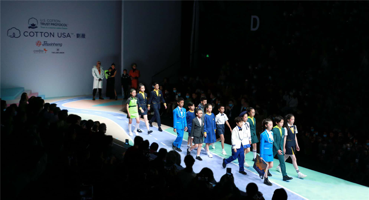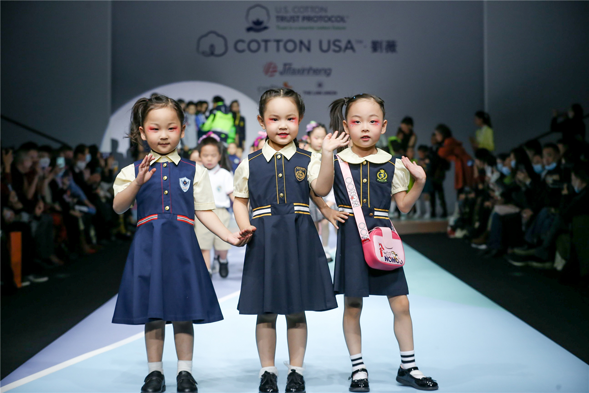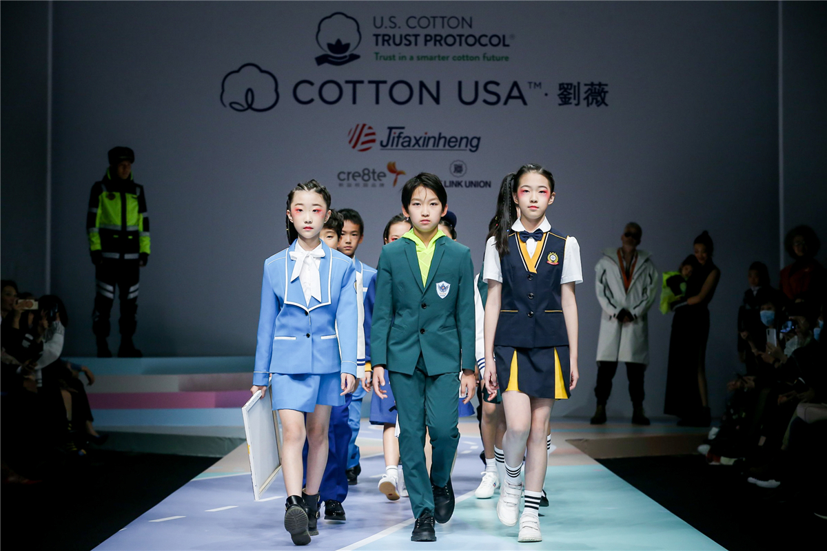 繼2019COTTON USA 的職業裝發布,今年COTTON USA 更著眼于“學生裝”這一細分“團服”領域。以“天天成長”為主題,展示了在學生時代可供穿著的制服系列,運動系列,休閑系列和智能防護系列等近百套新款。設計創意遵從內心最本真的善意初心,通過得體的服裝展現青春年少的歡樂和幸福家庭的和諧氛圍,同時更強調了美國棉花安全高品質,透明追溯的原材料對于學生裝的重要性。無論是純棉面料的升級,還是與不同科技功能的融合,都希望樹立一個學生裝領域的典型應用案例,持續深耕在功能學生裝、職業制服市場廣泛使用的時尚創新力。劉薇表示:“我們不僅關心校服的樣式更要關心校服的質量,特別是學生裝的安全指標,因為它直接關系到每個學生的身體健康。這次發布會的作品,我們專門考量了學生健康安全方面的指標,結合美國棉花在面料材質方面的優勢進行專項設計,希望樹立出一個在可持續時尚方面,針對學生裝領域的典型應用案例!