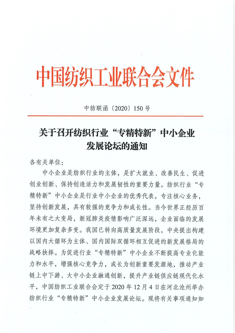 關于召開紡織行業“專精特新”中小企業發展論壇的通知