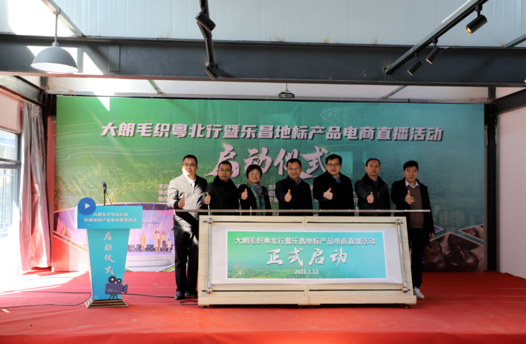 1月12日上午,大朗毛織粵北行暨樂昌地標產品電商直播活動啟動儀式在樂昌市北鄉鎮舉行。樂昌市委副書記黃藝坤、大朗鎮副鎮長曾悅,京東物流供應鏈大朗基地、毛織企業代表及樂昌市相關部門負責人參加啟動儀式。