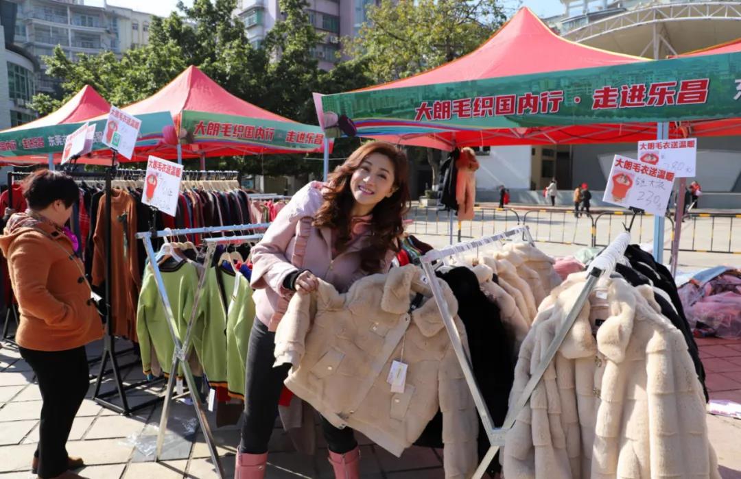 1月12日-14日,大朗毛織組織厚織坊、尚貝兒、僑駿等多家優秀毛織企業在樂昌職工文化廣場開展毛衣展銷活動。質優價廉的大朗毛織服裝深受樂昌人民的喜愛。