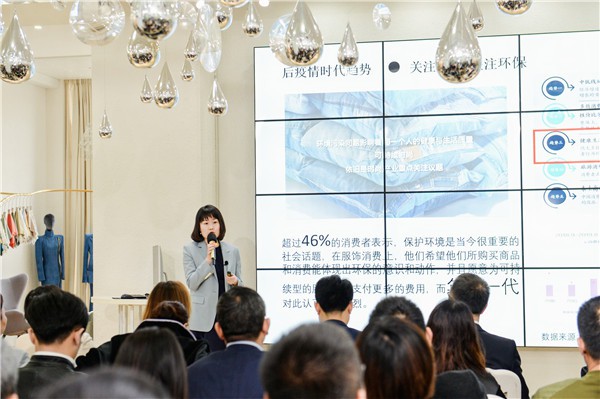 “外觀時尚、柔軟舒適、可內可外、綠色環保——后疫情時代消費者對服裝的舒適度和功能性有更多的市場需求。”賽得利公司市場經理潘燕華女士在《賽得利萊賽爾纖維產品》介紹中談道,萊賽爾纖維源于自然,從源頭到生產流程到最終的產品遵循閉環型的發展模式,具有100%國際認證漿+獨特制漿工藝、100%生物基產品認證、USDA生物基認證、99.7%以上溶劑循環利用、瑞士STANDARD 100 by OEKO-TEX®認證、生態環保達到嬰兒安全級別、可實現100%生物降解等獨特優勢。“2020年在山東日照投產的萊賽爾纖維產能高達2.5萬噸。目前萊賽爾產品在牛仔、休閑、家紡、無紡領域應用廣泛。最近我們與上海傳化達成了戰略合作協議。”她還介紹了萊賽爾纖維的產品性能、創新應用和品牌成功案例。