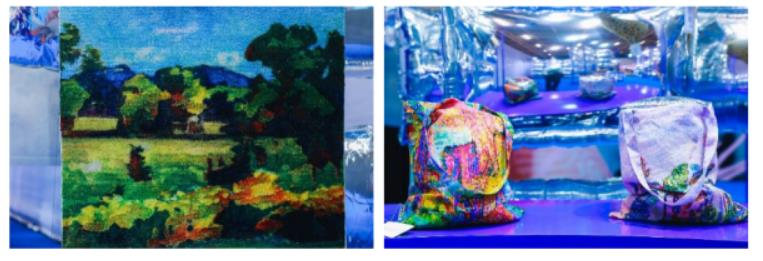 展區(qū)中,DPI SPACE與魯豐織染共同打造的工業(yè)級(jí)人工智能圖案設(shè)計(jì)平臺(tái),為魯豐織染設(shè)計(jì)了幾何圖形、佩斯利、趣味卡通、植物花卉、數(shù)碼抽象等五類專屬圖案紋樣,已廣泛應(yīng)用于國(guó)內(nèi)外客戶合作中;與金頂獎(jiǎng)設(shè)計(jì)師趙卉洲合作,以苗族刺繡與玉蘭花作為設(shè)計(jì)靈感,使傳統(tǒng)非遺藝術(shù)紋樣在人工智能創(chuàng)造技術(shù)的加持下,綻放出新的時(shí)尚生命力;與達(dá)利絲綢合作,以先進(jìn)的人工智能圖案情感生成框架技術(shù)和提花織造技術(shù),制作了世界首款人工智能設(shè)計(jì)的時(shí)尚領(lǐng)帶;與東方地毯聯(lián)合,生成野獸派風(fēng)景、潑灑藝術(shù)、扎染藝術(shù)三大類藝術(shù)風(fēng)格的圖案設(shè)計(jì),賦予了家居風(fēng)格更多可能性;與華紡股份攜手,實(shí)現(xiàn)利用人工智能對(duì)紡織服裝流行圖案的情感化設(shè)計(jì),并應(yīng)用于家紡產(chǎn)品中。
