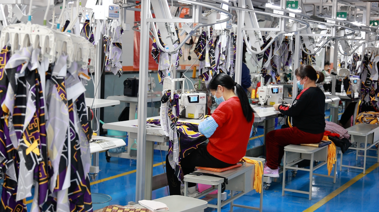 2015年落戶于都的興雪萊,是安踏和特步的重點供應(yīng)鏈伙伴,主要從事兒童和成人電商運動裝生產(chǎn)。幾年間,從3500平米的小廠房發(fā)展成12500多平方米的智能工廠,原來的3條傳統(tǒng)人工流水線變成12條智慧產(chǎn)線,員工也從最初的50余人發(fā)展到600余人,年產(chǎn)值從最初的5000萬元增長到2021年的2.3億元,企業(yè)生產(chǎn)效率得到翻倍增長。