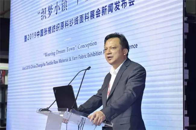 展會首日,“織夢小鎮“規劃暨 2019中國張槎紡織原料紗線面料展會期間舉行。