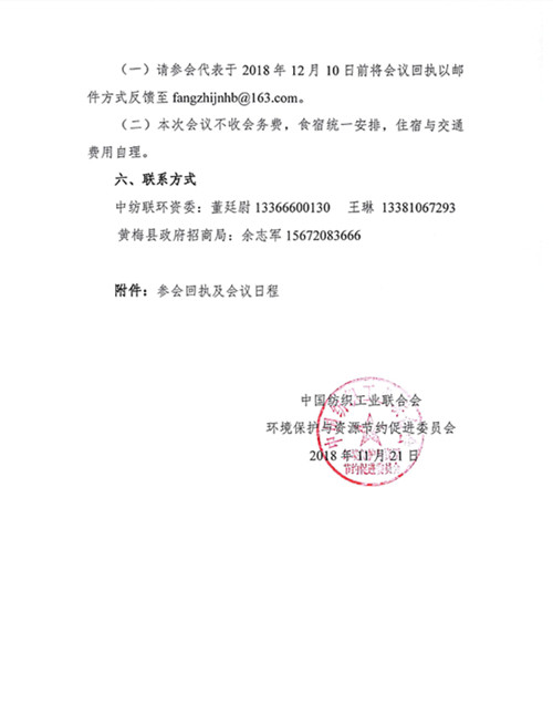(一)請參會代表于2018年12月10日前將會議回執以郵件方式反饋至fangzhijnhb@163.com。