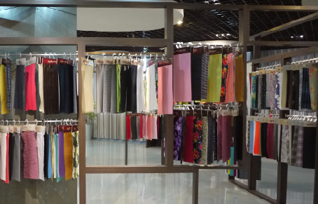 在國家紡織面料館王江涇分館里,最新流行面料、功能性面料靜態(tài)和動態(tài)展示吸引了各地客商的眼球。流行面料不僅對面料質(zhì)量有高要求,其時尚感和舒適度也很講究。王江涇分館里的各類面料展示分門別類,緊跟當(dāng)季面料顏色及款式流行趨勢更換,對于產(chǎn)業(yè)集群當(dāng)?shù)氐拿媪祥_發(fā)及生產(chǎn)具有很高的實用指導(dǎo)價值及風(fēng)向標(biāo)指示作用。