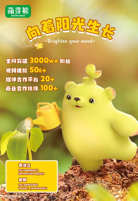 上海智間網(wǎng)絡科技有限公司主推IP是萌芽熊卡通形象品牌。該形象誕生于多肉植物,寓意“向陽而生”,形象及視頻內(nèi)容圍繞安全感、陽光溫暖、綠色自然三大關(guān)鍵詞展開,是中國國內(nèi)首個關(guān)注兒童身心大健康的親子類卡通IP。在中國全網(wǎng)覆蓋超3200萬粉絲,全球短視頻點擊破62億。衍生品SKU超500款,銷售額過3億,合作方有京東、阿里巴巴、克明面業(yè)、美樂棵等知名上市公司。獲30余項國內(nèi)外專業(yè)獎項,如2020年國家廣電總局舉辦南京動漫創(chuàng)投大賽二等獎等。IP矩陣已擁有9只成熟商業(yè)化形象。