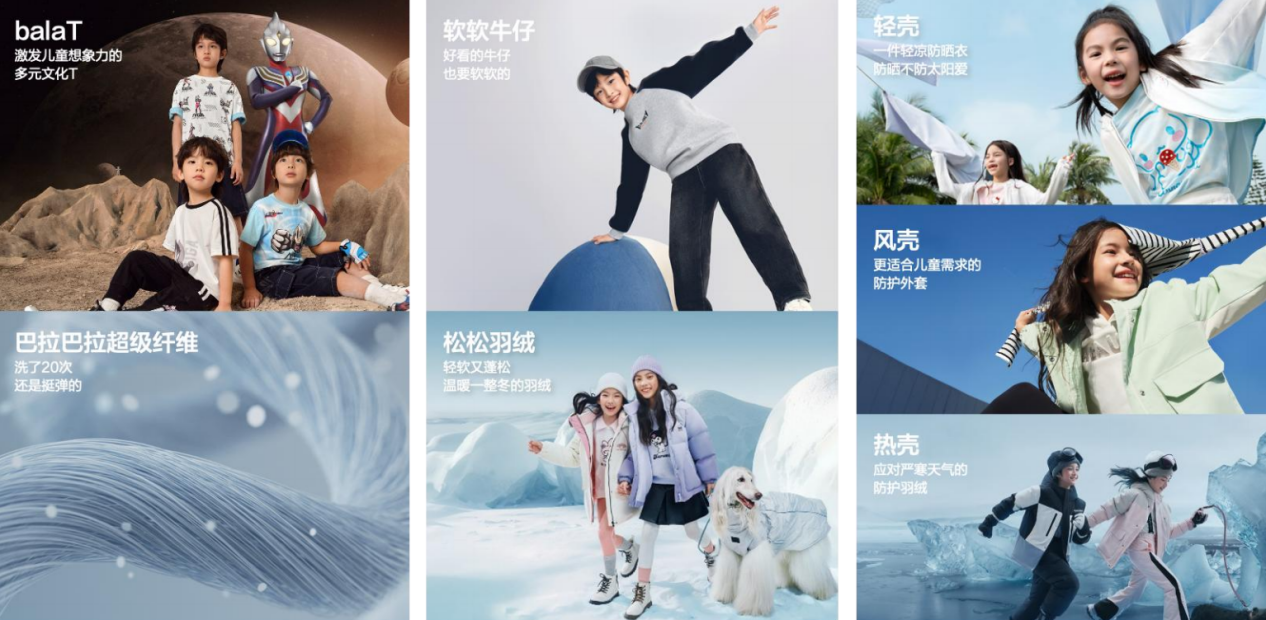 早在2006年,巴拉巴拉便以行業先行者姿態登陸央視,成為中國首個在國家級媒體投放廣告的兒童服裝品牌,以“公信力”重塑行業認知。巴拉巴拉最出圈的表現就是從品牌誕生之初就采取了一種“反套路”的獨特視角——將“人”設定為自己品牌的服務目標,而不是“小朋友”,理解每個小朋友都是不一樣的個體。這種"反套路"的定位使其成功避開了傳統童裝品牌過度聚焦產品功能的競爭紅海。