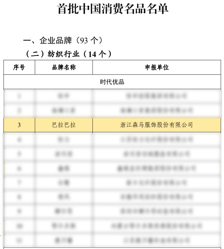 圖:巴拉巴拉入選中國首批消費名品紡織行業“時代優品”榜單