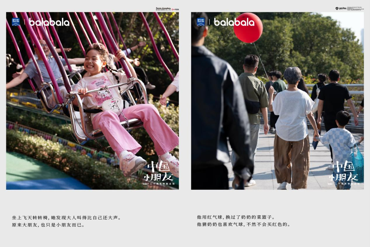 近期,正值春分時刻,時隔近20年,與新華社聯合出品《中國小朋友》,以代表品類balaT二十年來對于童年、對于成長、對于陪伴的貼身觀察凝聚成一條故事片,將對兒童成長的洞察升華為國民級文化議題,全網話題一經上線曝光量超7億+,再次驗證巴拉巴拉“不僅是商業品牌,更是時代記錄者”的獨特定位。 巴拉巴拉的破圈之路,本質是一場對兒童產業價值的重構。